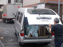 作品のほか、倉庫に保管してある設営用の備品や展示台・展示用品などを積み込み、2台ともパンパンです。