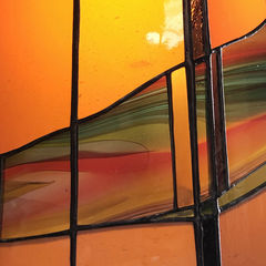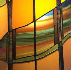 何年か前に流れが美しいランバーツ社のガラスを買い、何に使おうか考えていましたが、今井理桂氏の陶板を見てすぐにデザインが決まりました。
