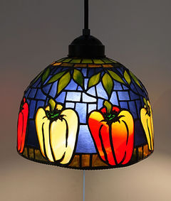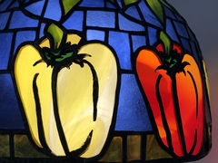 発色が鮮やかなランバーツ社のガラスはそれだけで美しく、カラフルなパプリカが宝石のようです。