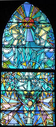 まずは、前回のブログの最後から3つ目の写真で、嶋本先生が写っているところの左手の祭壇のステンドグラスです。