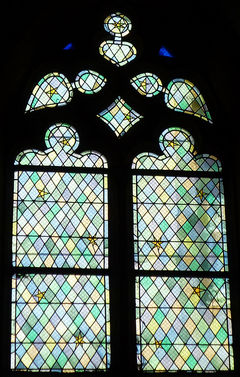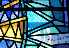 上の写真のように、コクトーのステンドグラスは絵付けはほどこされてなく