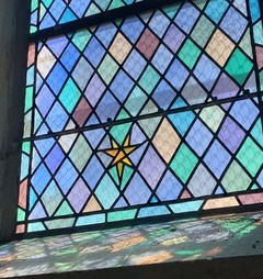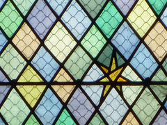 シンプルなデザインのステンドグラスがいくつも入っていました。
