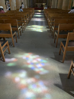 祭壇に向かう中央の通路に映り込みが続き、美しかったです。