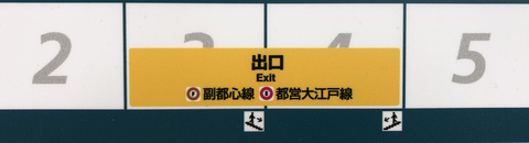 新大久保駅で、「副都心線」と「大江戸線」の乗り換えと書いてあります。