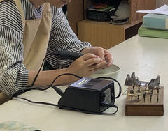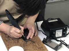 月の部分を描くのに、サンドブラストのほかに、ハンドリューターも使いました。