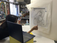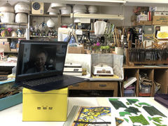 まずは、絵付け授業の日に、ご自宅の江本先生と 「リモート」 で
