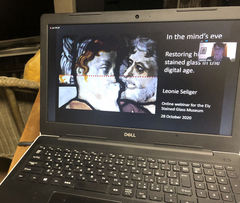 そして、カンタベリー大聖堂付属のステンドグラス工房のレオニーさんのレクチャー! 特に絵付けの修復についてと聞いたら、イングランドに行ってでも聞きたいのに、何とたった約6ユーロで、そして自宅で! 受講できました。