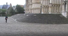 修復部分のみならず、補強の仕方など、外からでも見たい部分がたくさんありますが、側廊に沿って西ファサードに向かいます。