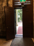 さて、最終日の朝、正面玄関の入口に大きなポスターを出した時に、いくつか写真をとりました。