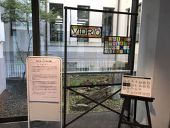 [画像4]階段をあがる前の左側には、YouTubeで公開中のオンライン展覧会 「びどりを2020 ステンドグラス展覧会」 の映像の視聴コーナーがありました。