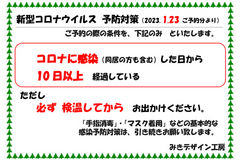 ※ 「工房内で濃厚接触者にはならない」 よう注意しております。