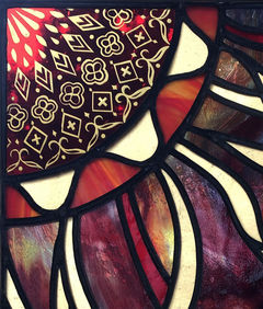 ガラスカットや、鉛線組みに苦労しましたが、完成して見ると、鉛線のラインが全体を引き締めてくれたと思います。