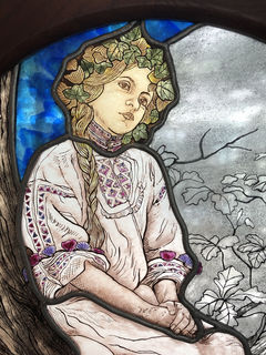 妖艶な美女のポスターのイメージが強いミュシャですが、宗教画も多く、写真の「百合の聖母」はその代表的な作品のひとつです。