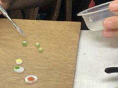 順番に下地接着ボンドで土台の板に貼っていきます。