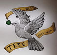 鳩、リボン、クローバーにグリザイユで絵と文字を描きました。