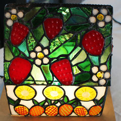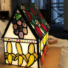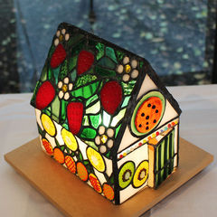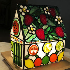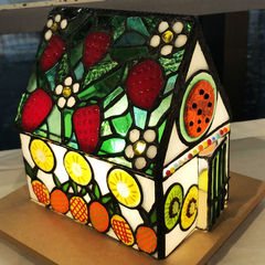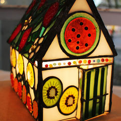 このハウス型のステンドグラスを見て、フルーツを楽しみましょう。