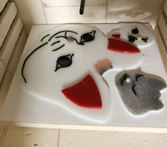 白いガラスの上に、スランピングした黒いガラスを配置します。