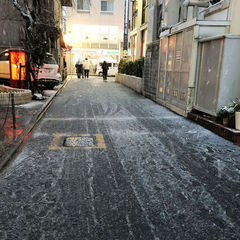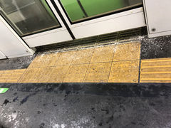 JR山手線 新大久保駅のホームドアの前には、融雪剤が撒かれていました。