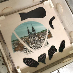 猫ちゃんの毛並み、街並みなども描き、窯で焼成します。