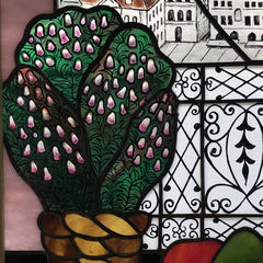 クリアに緑色とピンクの2色が被せてあるガラスを使いました。
