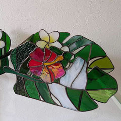 「モンステラ」 サンドブラストで段彫り
