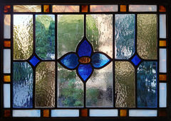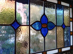 中央の花と左右のダイヤ型、縁取りの小さい正方形の鉛線を組むのが、なかなか大変でした!
