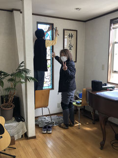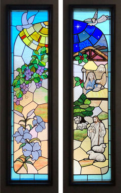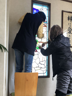 熱血講師のプロフィール教会の二枚組のステンドグラス完成
