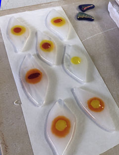 ガラスパウダーの上に、ガラスを置いてフュージングしたり…