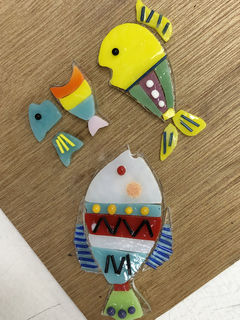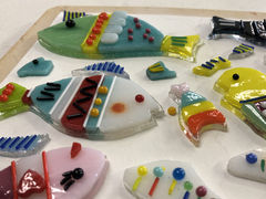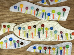 あらかじめ、まん丸に焼いたガラスやストリンガーを乗せます。