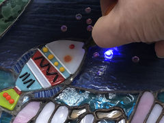 あらかじめ、まん丸に焼いたガラスやストリンガーを乗せて、ボンドで仮止め。